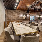 • Ресторан (блок 400 мм, утепление 100 мм, клинкерный кирпич с утеплением 50 мм, утепленная монолитная плита): банкетный зал на 60 посадочных мест, кухня, сервировочная, 3 санузла, постирочная, комната персонала, гардероб, гараж.