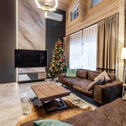 Все внутренние отделочные работы, мебель и бытовая техника были выполнены по индивидуальным дизайнерским проектам архитектурно-дизайнерской студии Юка. Также осуществлен авторский и технический надзор за выполнением работ.