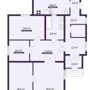 - Общая площадь дома составляет 95,6 м2. В доме имеется четыре жилые комнаты, одна из них проходная, кухня 9,8 м2, прихожая и совмещенный просторный санузел с ванной.