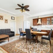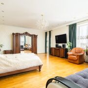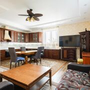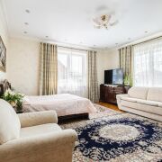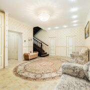 -Просторные светлые комнаты с дизайнерскими обоями и мягкой мебелью. Функциональные гардеробные зоны и роскошные хрустальные светильники. Кухня из натурального дерева со встроенной техникой - идеально для семейных ужинов. Текстиль, шторы, ковры - все подобрано с заботой о комфорте и вкусе.