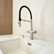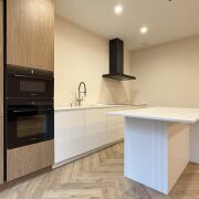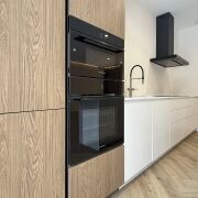 Встроенная техника премиум-класса: духовой шкаф, микроволновая печь, варочная панель и вытяжка MAUNFELD, посудомоечная машина Electrolux.