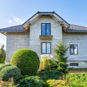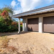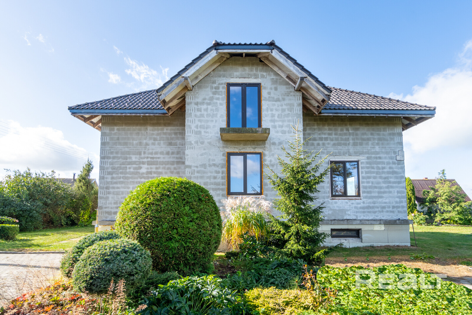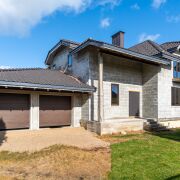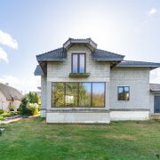 Крыша: керамическая черепица Nelskamp (Германия). Гаражные ворота Höfmann (Германия). Окна ПВХ ламинированные с внешней стороны. Мансардные окна VELUX премиум деревянные с наружными роллетами с дистанционным управлением. Двери металлические, нестандартного размера, сделаны на заказ. Высота потолка (в черновом виде): цоколь - 2,75 м; первый этаж - 3,25 м.