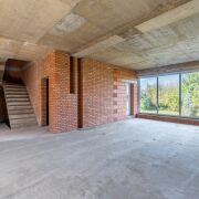 Стены - керамический блок. Цокольный этаж: монолит. Перекрытия монолитные. Использовался бетон М500 с добавлением проникающей гидроизоляции Penetron. Внутренние стены во всем здании из керамического кирпича. Лестница бетонная.