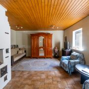 Блок силикатный, утеплен и оштукатурен. Первый этаж: полы утеплены, облицованы плиткой керамической (Италия), стены оштукатурены и оклеены обоями. Окна ПВХ, потолок дерево. Мансарда: отделка дерево. Лестница деревянная. Печь три в одном: отопительная, русская, духовой шкаф. В летнем доме установлена душевая кабина, кухня, бойлер.