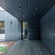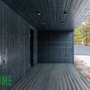 Стены из керамзитобетонного блока 400 мм + утепление 50 (минвата). Вентилируемый фасад выполнен из сибирской лиственицы, покрыт немецкой лазурью.