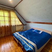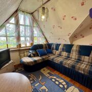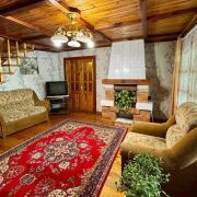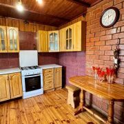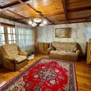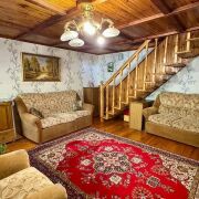 - Дом построен из брёвен и имеет два уровня. Фундамент надёжный, а внутренняя отделка выполнена из дерева, что придаёт дому уют и теплоту.