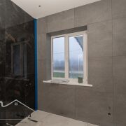 По всему первому этажу уложены водяные тёплые полы под плиткой.