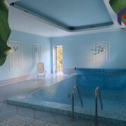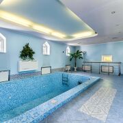 - Бассейн 35 м³ с водяной пушкой, системой фильтрации и очистки.
