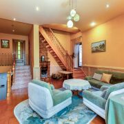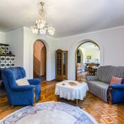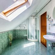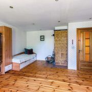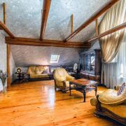 - Натуральные материалы в отделке – массивная кирпичная кладка (толщина стен 60 см), паркет, подогреваемая керамическая плитка, деревянные настенные панели, двери и мебель.