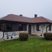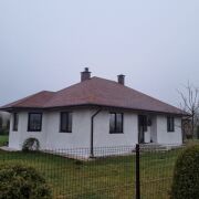 Одноуровневый дом 2021 года постройки, возведен из газосиликатных блоков и оштукатурен. Крыша - гибкая черепица. Система отопления включает в себя электроотопление, печь и камин. К дому примыкает открытая терраса, идеальная для отдыха и наслаждения свежим воздухом.