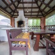 На участке жилой дом 251.8 кв.м., кирпичный гостевой дом (с теплым полом) и беседка (из бесерных блоков, оснащена мебелью, подведена вода, обшита мягкими окнами, зона барбекю).