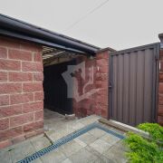 По улице асфальтированная дорога, перед участком парковка вымощенная плиткой.