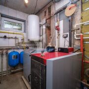 В жилом доме 2 счётчика (двух-фазный и трех-фазный), приточно-вытяжная система, 2 котла Viadrus: 2-ух контурный газовый и твердотопливный (на дровах). Чугунные батареи. Окна Rehau. Дубовый паркет, хрустальные люстры, обои Roberto Cavalli, плитка производства Италия, Польша.