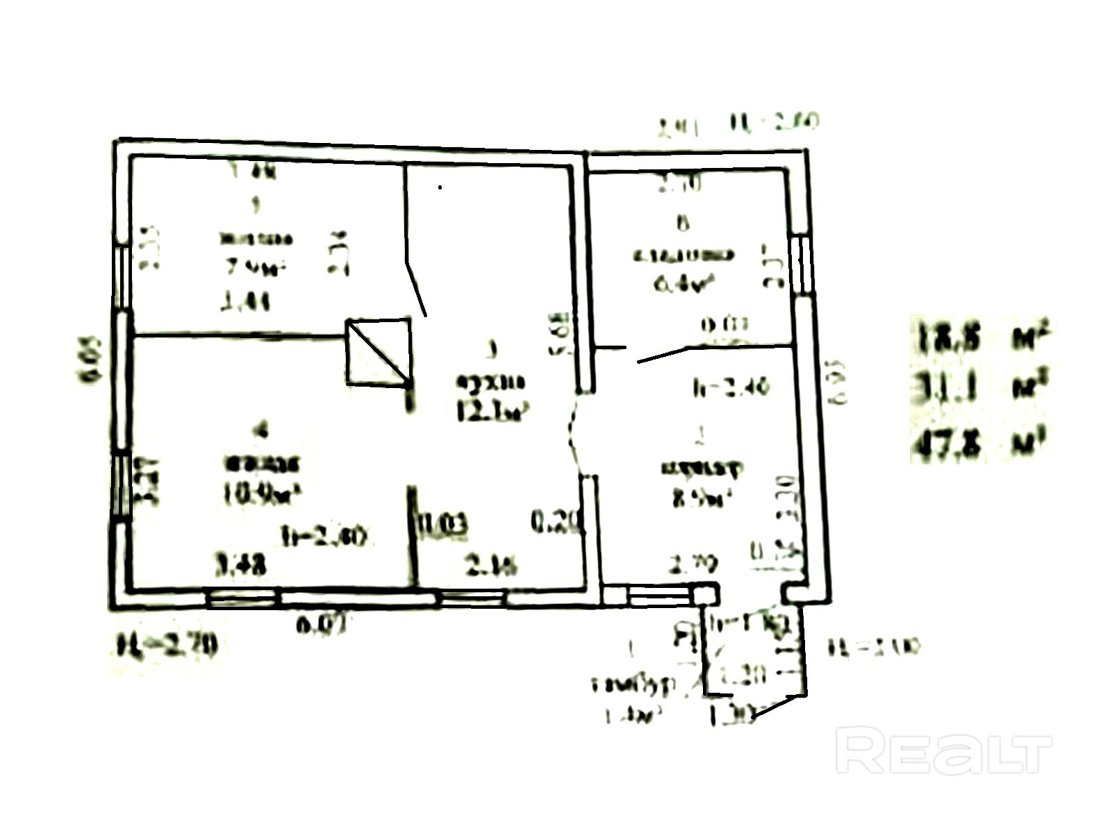 Общая площадь — 47,8 м2