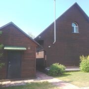 На участке отдельностоящая баня 45,15 кв.м. Гараж 33,8 кв.м. С подвалом и помещением под тренажерным залом, отделаны вагонкой.