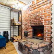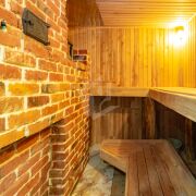 - Внутреннее устройство: печь для парной, камин из красного кирпича, комбинированные полы (дуб + керамогранит), дубовая лестница.