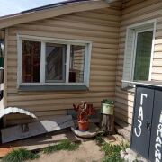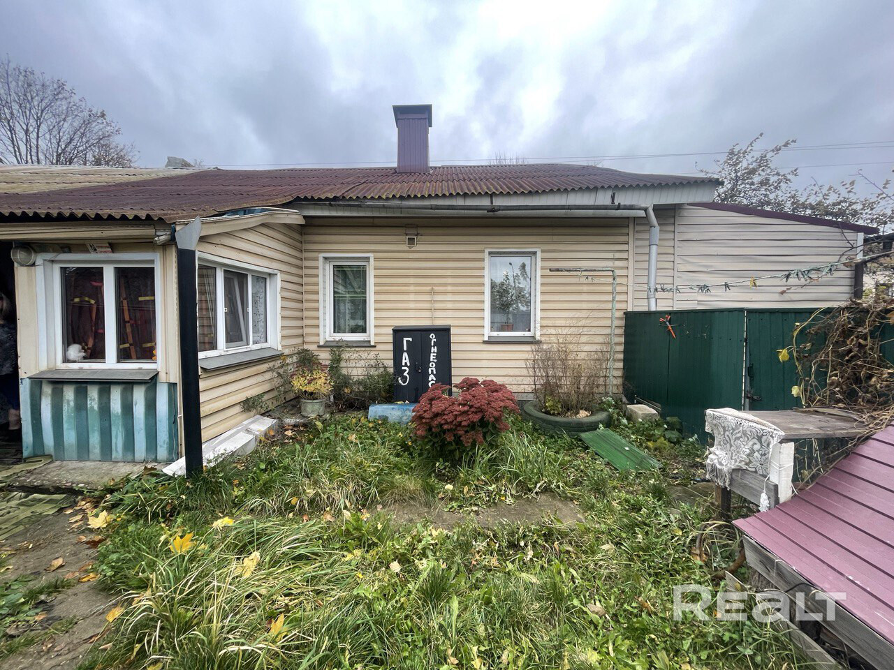 Состояние: дом реконструирован в 2018 году. Стены — бревно, пропитанное и обшитое сайдингом, крыша — шифер.