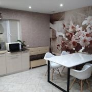 Кухня площадью 19,8 м. кв. полностью оборудована всей необходимой мебелью и бытовой техникой, включая посудомоечную машину марки Whirlpool. Так же установлен бойлер на 60 л.