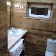 Между вторым и третьим уровнем расположен компактный санузел с умывальником и унитазом. Предусмотрено место для стиральной машины. Пол и стены облицованы кафелем современных коллекций. Пол также с подогревом.