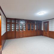 1. Первый этаж, состоит из просторной гостиной (38.6 кв.м.) в которой расположен камин и зона отдыха, кухни с кухонным гартитуром и техникой (16.0 кв.м.), двух жилых комнат (10.9 кв.м. и 10.6 кв.м.), большого сан.узела и прихожей с шикарной лестницей.