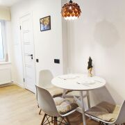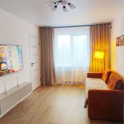 Входная металлическая дверь. Полы- ламинат Эгер, стеклопакеты, натяжные потолки. Стены- обои под покраску.