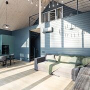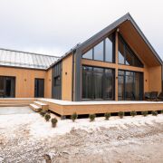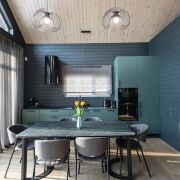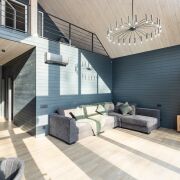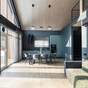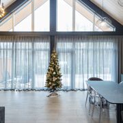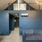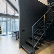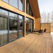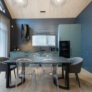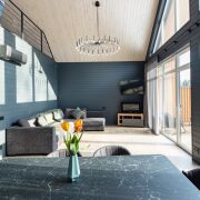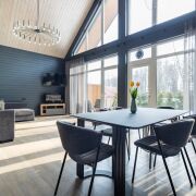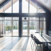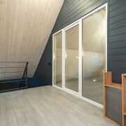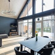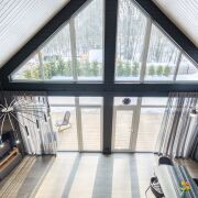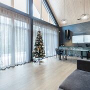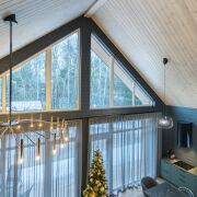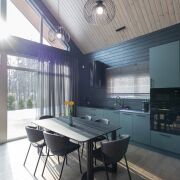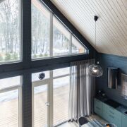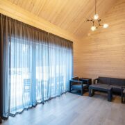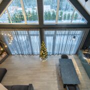 - В гостиной второй свет на всю высоту дома со стеклянной стеной - 5 метров в высоту