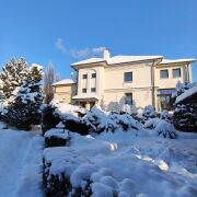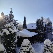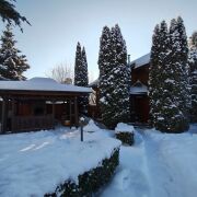 На участке есть отдельностоящее здание – баня с бассейном и комнатой отдыха, построенная из цельного бруса.