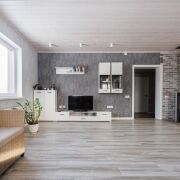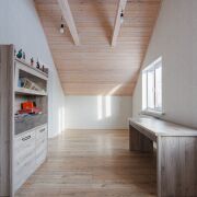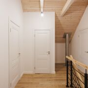 Первый этаж: веранда остекленная, топочная, совмещенный санузел с душевой, кухня с выходом на просторную открытую террасу, гостиная, родительская спальня.