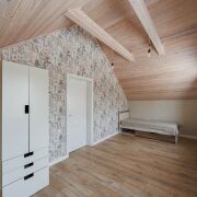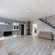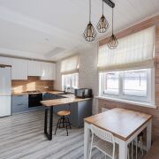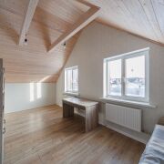 Дом первого этажа возведен из бруса, мансарда – тип каркасный.