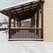 Открытая терраса выложена террасной доской из лиственницы, покрыто специальным составом для внешнего использования.