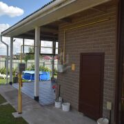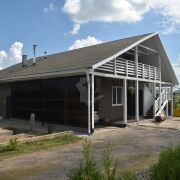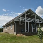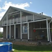 Под общей крышей дома оборудован теневой навес и место для барбекю.