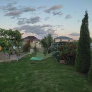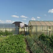 На участке также предусмотрены благоустроенные грядки и две теплицы, высажены разнообразные декоративные и плодовые растения, что делает его идеальным для любителей садоводства.