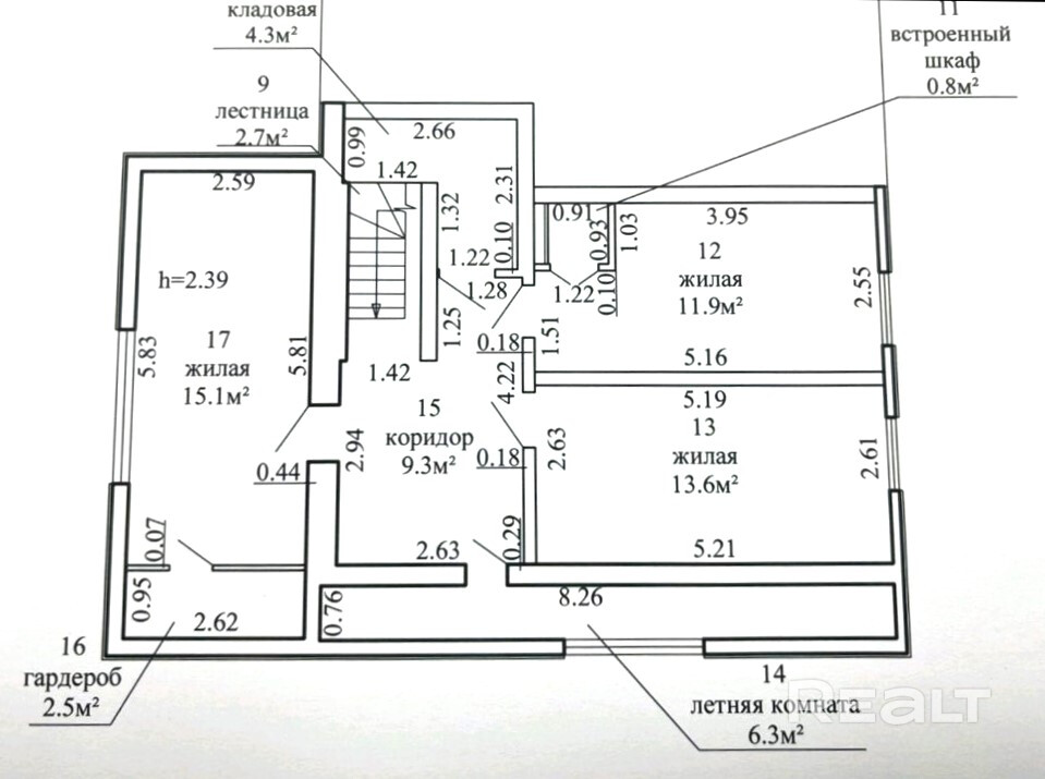 Общая площадь: 150,3 м2 /71,5 м2 /17,1 м2.