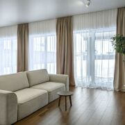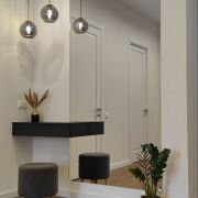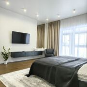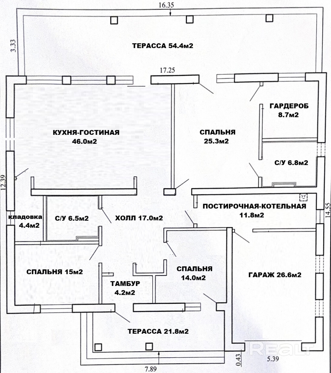• 4 отдельных комнаты: кухня-гостиная с отдельной кладовкой и выходом на террасу; мастер спальня с гардеробом, санузлом и выходом на террасу; 2 спальни c выходом на террасу; гостевой санузел; просторный холл; постирочная-котельная; гараж; 2 террасы.