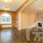 -Вторая гостиная - это полноценная каминная зона с массивным камином из природного камня, износостойким керамогранитом и большими окнами. Это пространство создано для отдыха, спокойных вечеров и уюта, который возможен только в доме такого уровня.