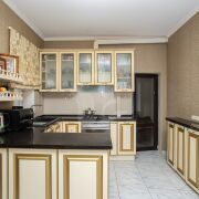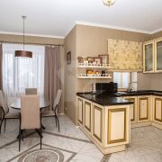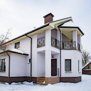 - Также на участке расположен современный уютный коттедж. Общая площадь дома составляет 184,6 м2, с  4-мя жилыми комнатами и просторной кухней.