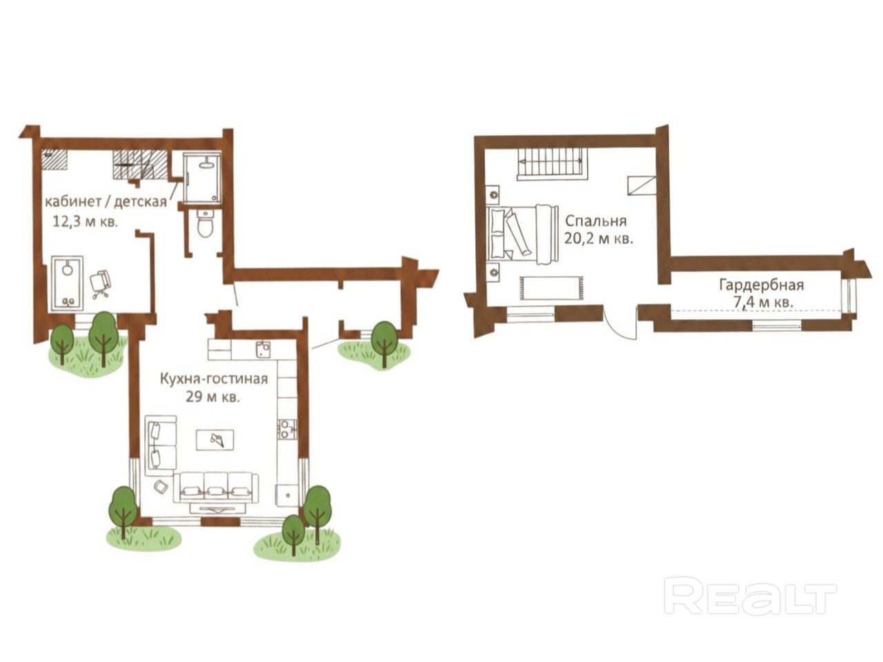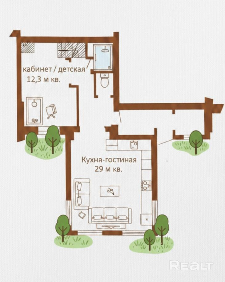 Подойдёт для гостей, родителей, взрослых детей или как кабинет для удалённой работы.