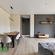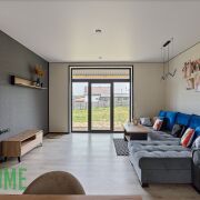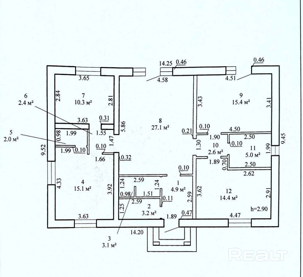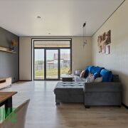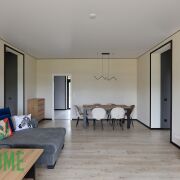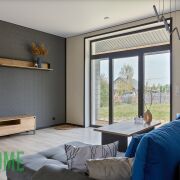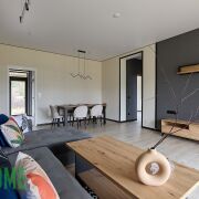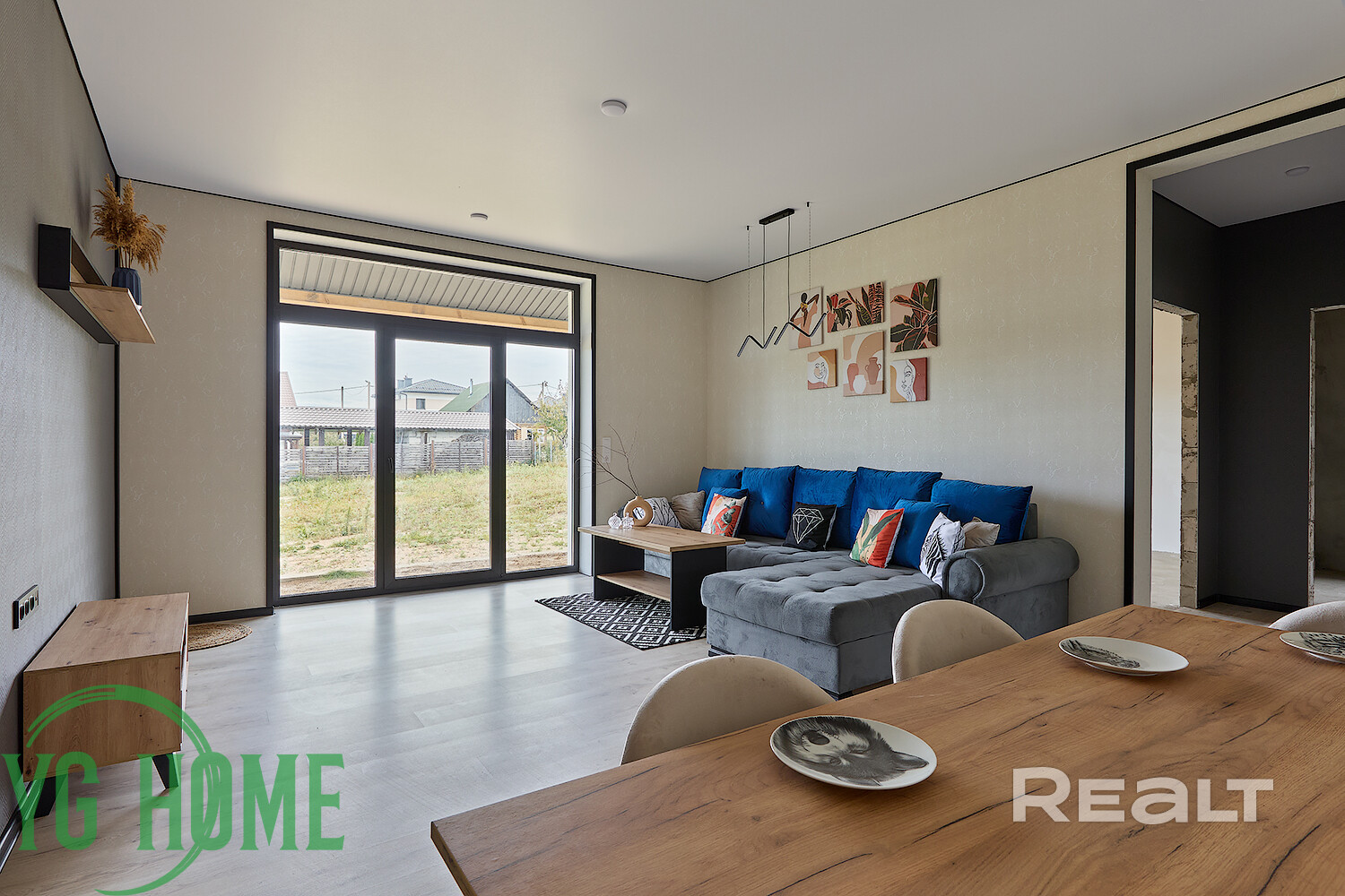 В коттедже: гостиная с выходом на террасу  -  27 кв.м, 3 отдельные спальни (10,3, 15,4, 14,4 кв. м.), кухня - 15,4 кв.м, 2 санузла, топочная.