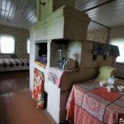 Жилой дом из бруса, покрашенного снаружи размером 6,4 на 8,8 м на бутовом фундаменте с дощатой пристройкой 26 кв.м. (кладовой, прихожей и верандой). В доме 3 комнаты, отапливаемые печкой "групкой" и русской печью-лежанкой.