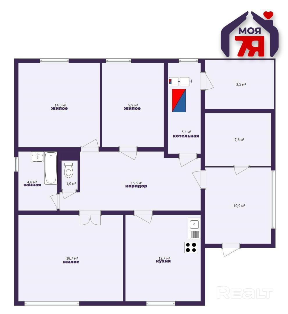 - Ванная и туалет находятся в доме и раздельные, а наличие бойлера обеспечит вас горячей водой в любое время.