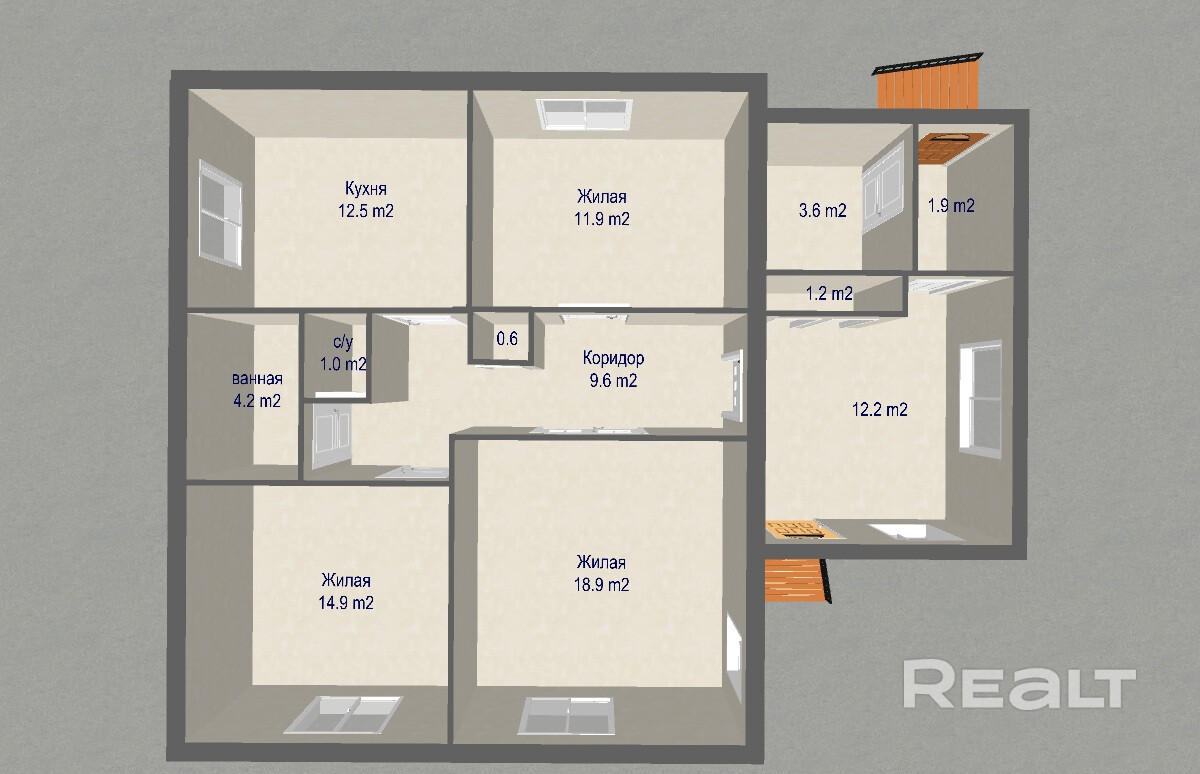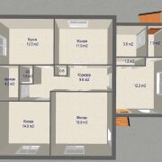 Общая площадь 73,3 кв.м, три раздельные комнаты( 18,9; 14,9; 11.9 квм), просторная кухня -12,5 кв.м, большая летняя комната . Дом полностью готов к круглогодичному проживанию.