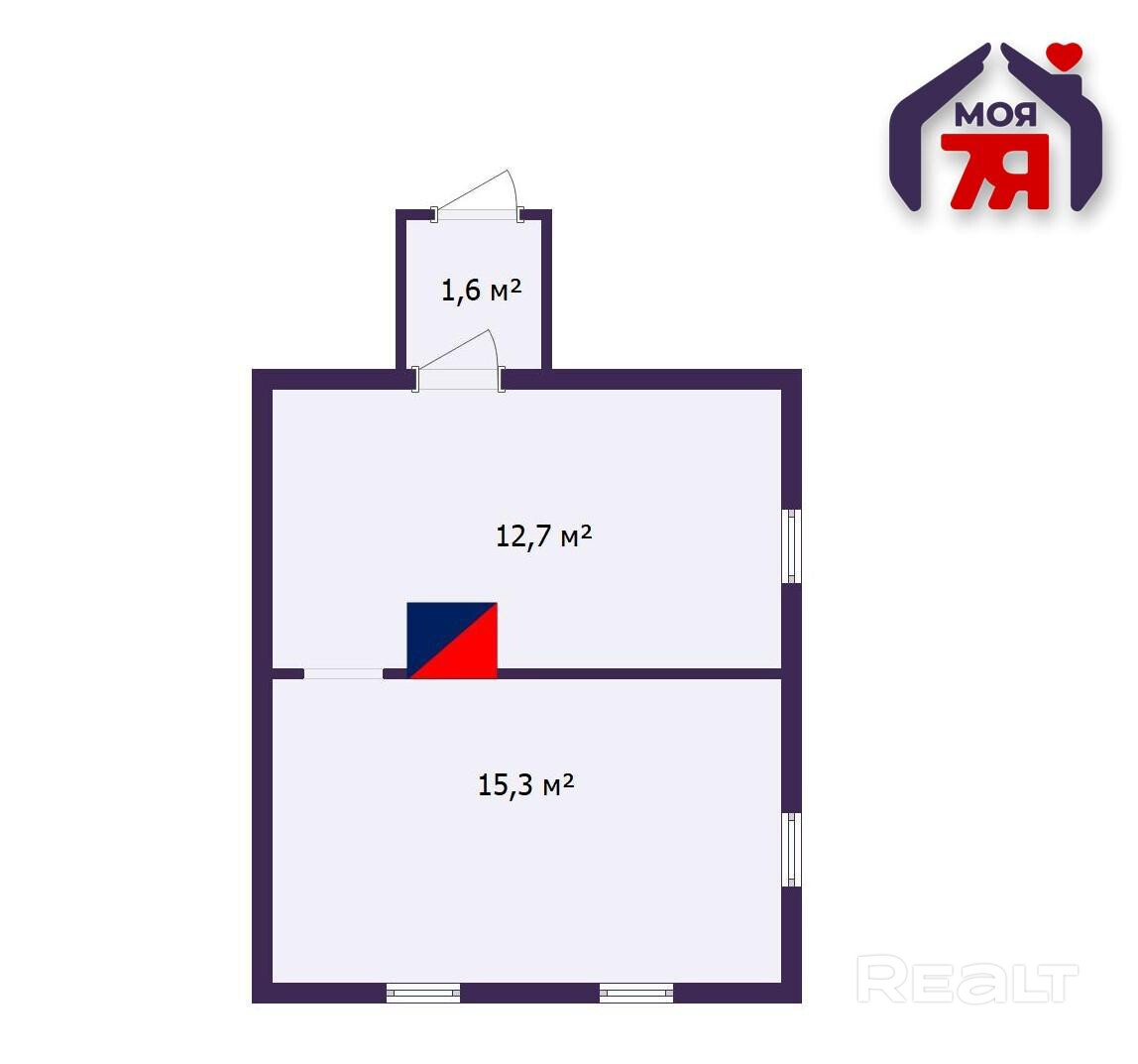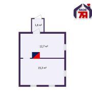 -Общая площадь - 29,6 кв.м, жилая - 15,3 кв.м. При этом кухня 12,7 кв.м - просторная для такого формата, здесь удобно готовить и обустроить полноценную обеденную зону. Планировка простая и понятная, без лишних метров