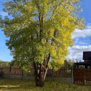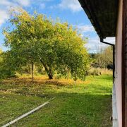 Двор у дома облагорожен, имеет фруктовые и декоративные деревья, кусты