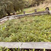 - место для бани, уже установлен фундамент 5*5м и сваи под террасу;