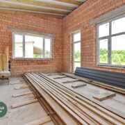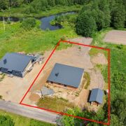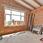 На участке расположен кирпичный дом (40% готовности), крыша-металлочерепица, есть электричество и гостевой домик из бревна.