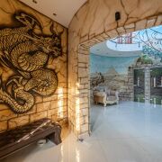 - В доме есть отдельный банкетный зал со сценой, светомузыкой, баром (в баре есть холодильник и мойка для посуды)