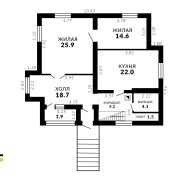 • Две комнаты — 25,9 м2 и 14,6 м2