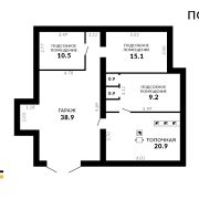 • Подсобные помещения — 10,5 м2, 15,1 м2, 9,2 м2
