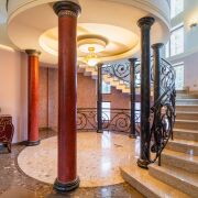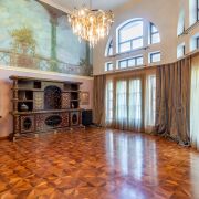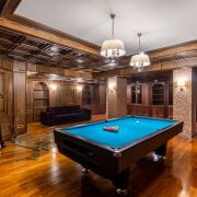 - Цокольный этаж простирается на всю площадь дома. Состоит из 8 отапливаемых помещений: комната отдыха для персонала, просторная и поностью мебелированная детская комната, русский бильярд -комната отдыха в английском стиле из натурального дерева,комната для хранения(винная комната)с кодовым дверным замком, постирочная,просторный санузел, несколько кладовых и хоз. помещений, где будет удобно хранить инструменты, инвентарь, а также все необходимые вещи.