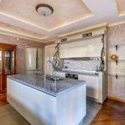 - Проведены все необходимые коммуникации: электричество , газ, водоснабжение, местная канализация. Отопление с помощью дорогостоящего газового оборудования. Везде установлены стеклопакеты ПВХ, теплые полы с итальянской плиткой, мрамором и паркетом с рисунком по всей площади.